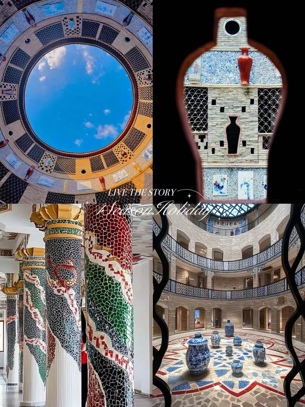 The Porcelain Palace’s vibrant mosaics and spiraling designs are perfect for creative angles.